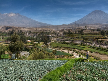 7 heures: Route du volcan Ampato. Nous partirons en direction de l'est vers le village de Pédrégal. En route, nous passerons par les vallées de Vitor et de Siguas avant de continuer par une piste d'une centaine de kms en direction du canyon de Colca. Cette piste menant au canyon de Colca est la plus basse en altitude ce qui nous permettra une montée progressive pour éviter le mal des montagnes.