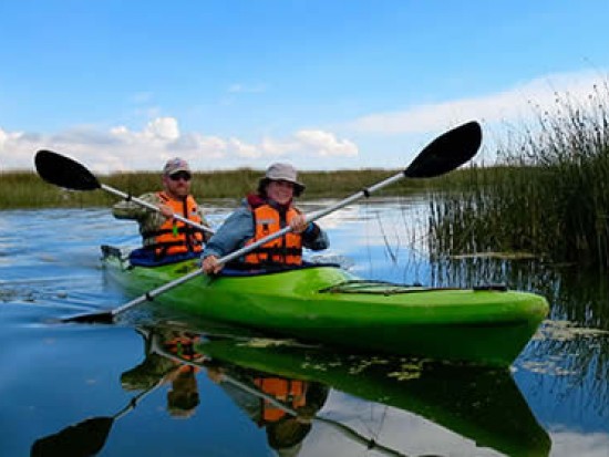 Retour à Puno et départ en kayak vers les îles Uros. Ces îles qui sont au nombre de 100 existent depuis des centaines d’années. Les Uros pêchent, chassent les oiseaux et vivent des plantes lacustres, notamment les roseaux totoras qu’ils utilisent pour leurs bateaux, leurs maisons, et dans les fondations même de leurs îles. Retour en bateau à Puno puis transfert à l’hébergement de notre sélection.